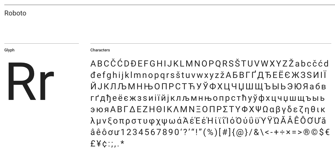 Here is an example of how Roboto typeface looks inside.