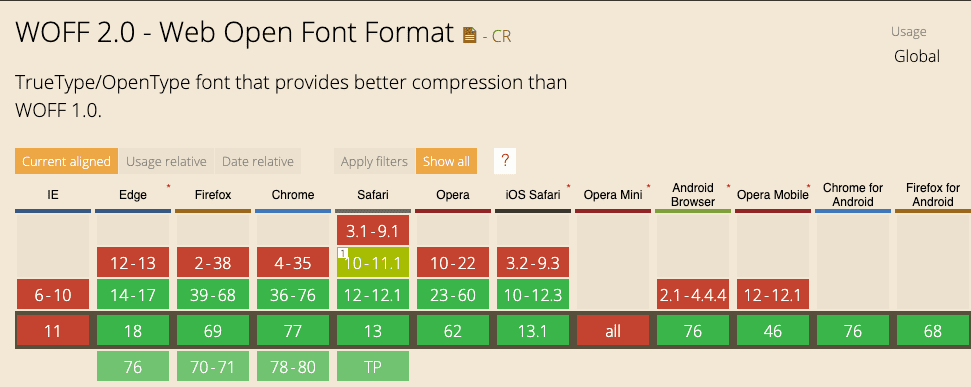 - WOFF/WOFF2 - Web Open Font format