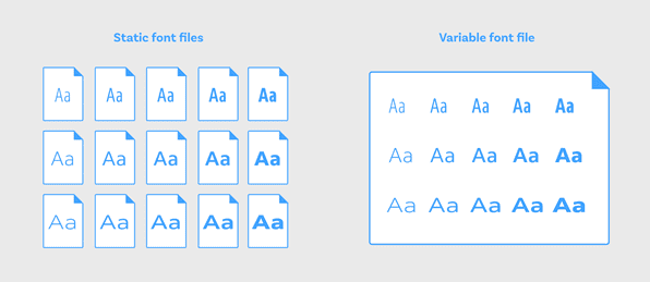 To optimize this we have a relatively new technology called - Variable Fonts. It includes all the type variations into a single file!