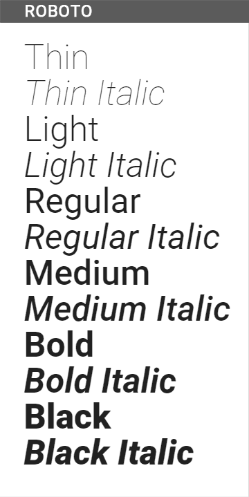 Here, for example, all of the variations of Roboto font.